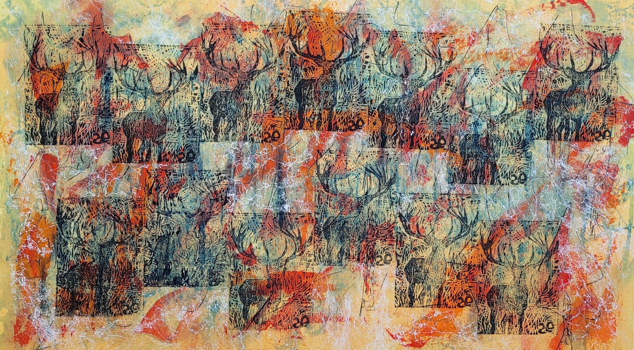 Linoldruck Hirsche